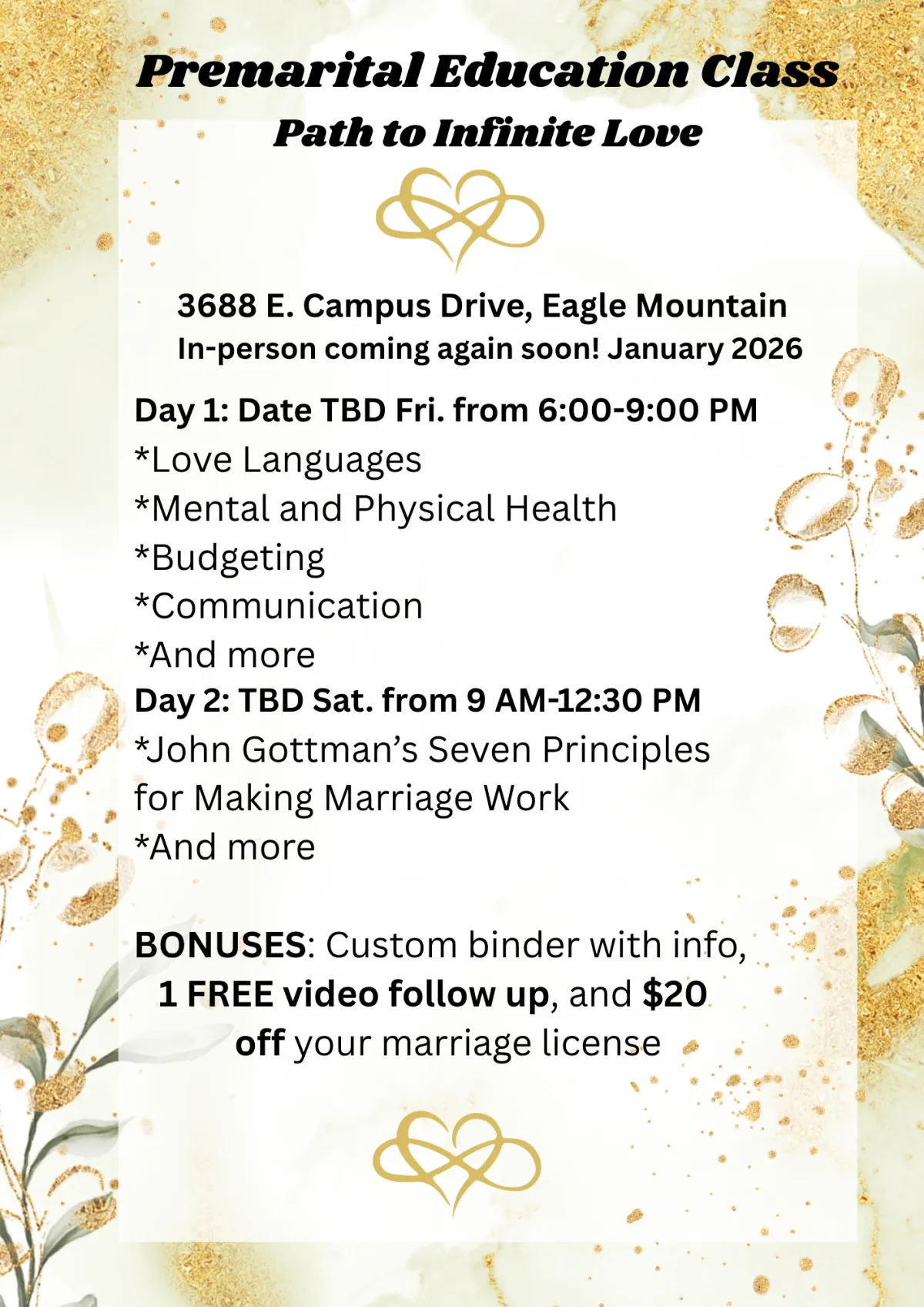 I am striving to create healthy foundations for couples to strengthen and build long lasting relationships!