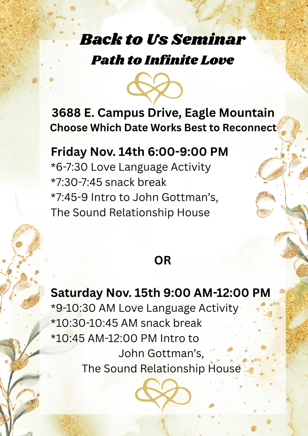 The classes are considered educational. There will be some therapeutic aspects, but this won't be couple's therapy. The information you learn can benefit your relationship if you choose to apply what is learned.